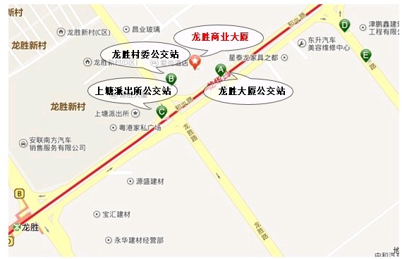 公交車站名: 龍勝大廈/龍勝村委/上塘派出所